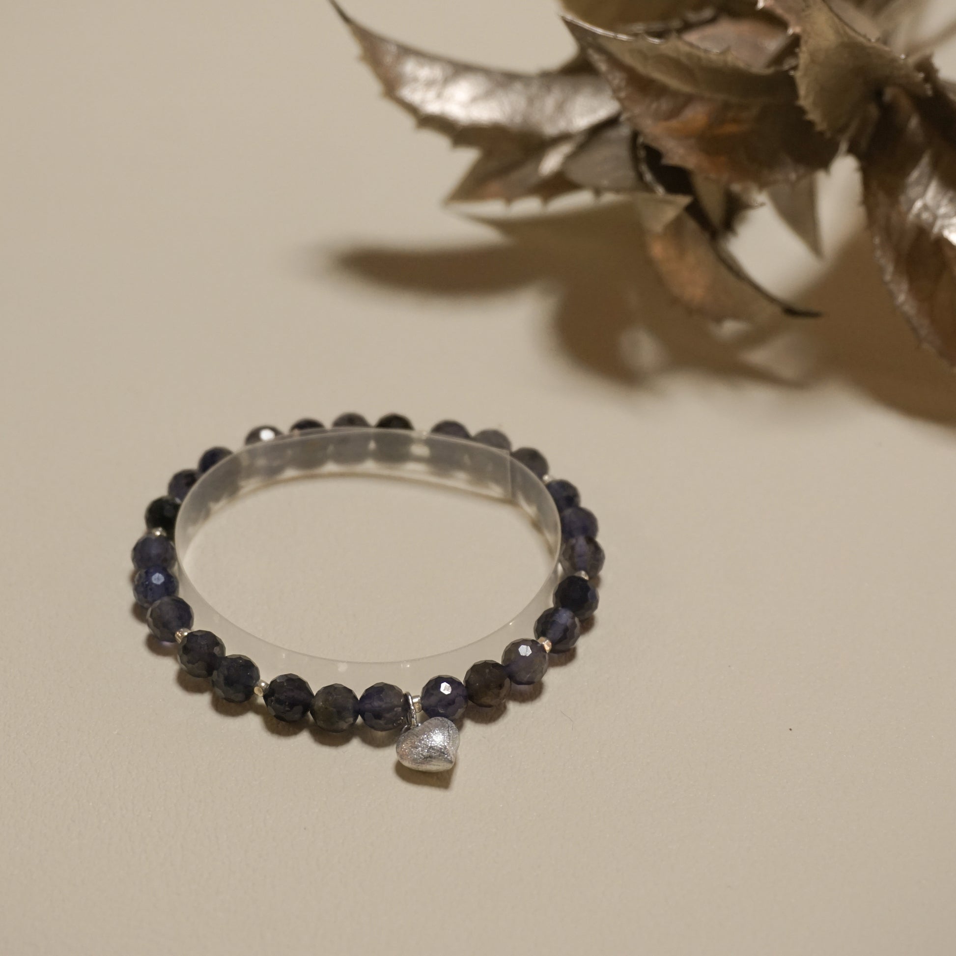 アイオライト、メタルビーズ、18kgpチャーム