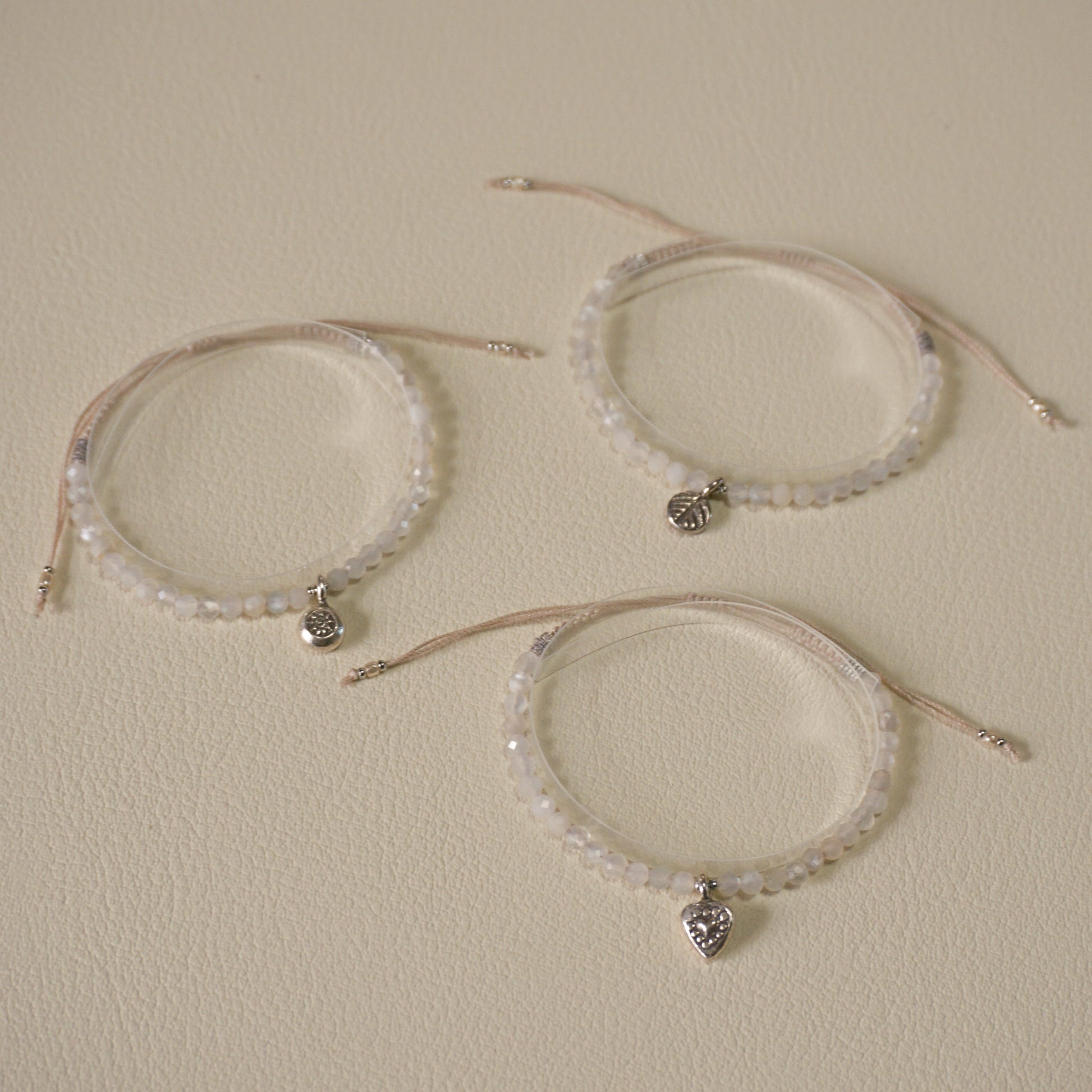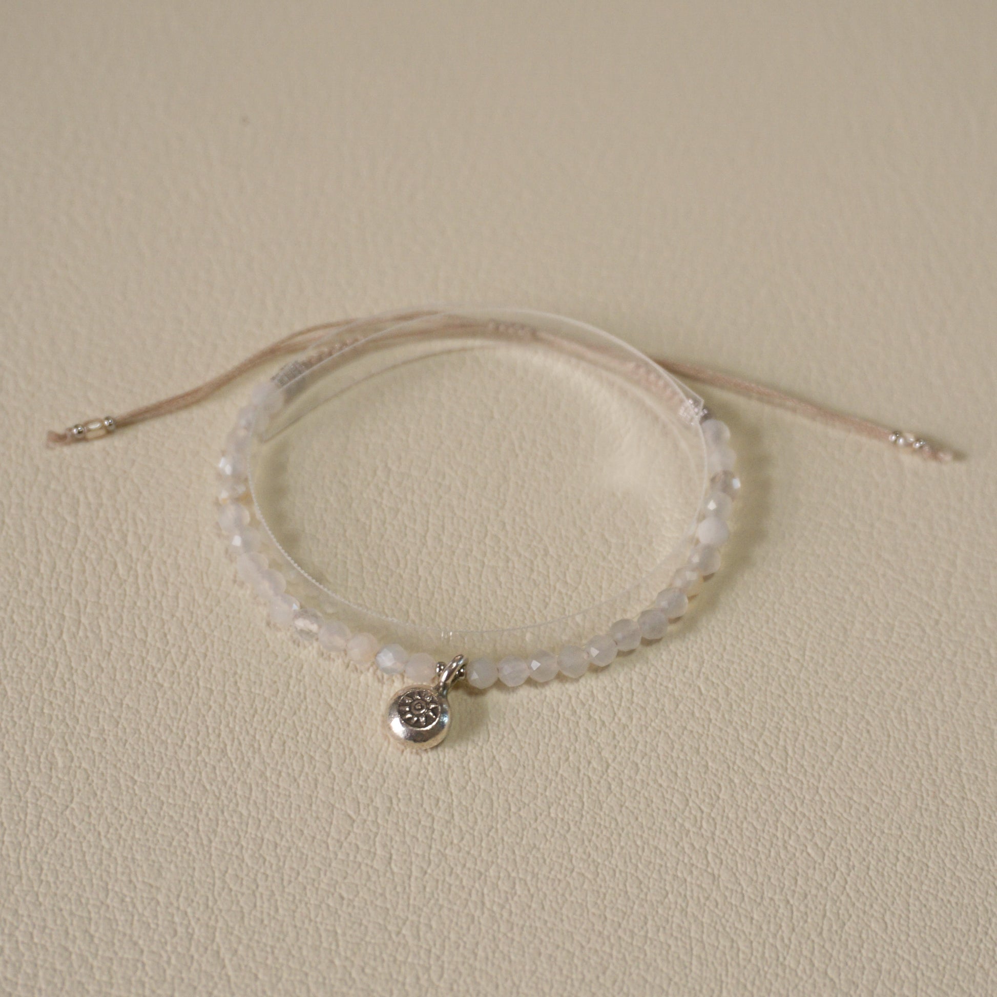 カレンシルバー太陽チャーム、ホワイトムーンストーン、ガラスビーズ、メタルビーズ、エジプト綿紐