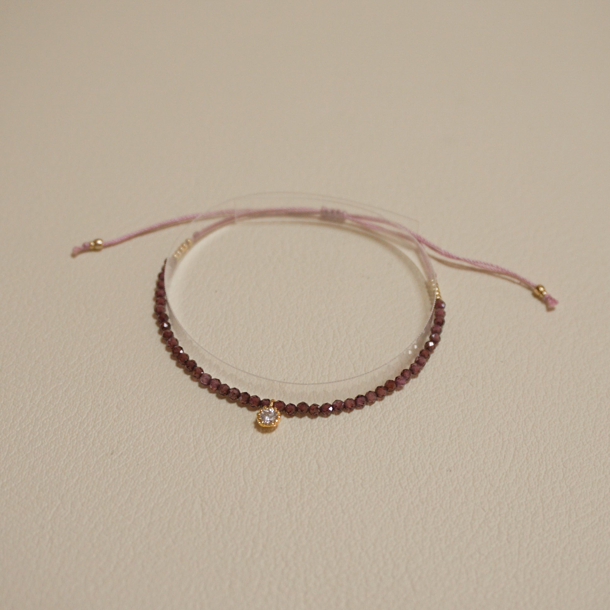ガーネット、真鍮キュービックジルコニアチャーム、ガラスビーズ、メタルビーズ、エジプト綿紐