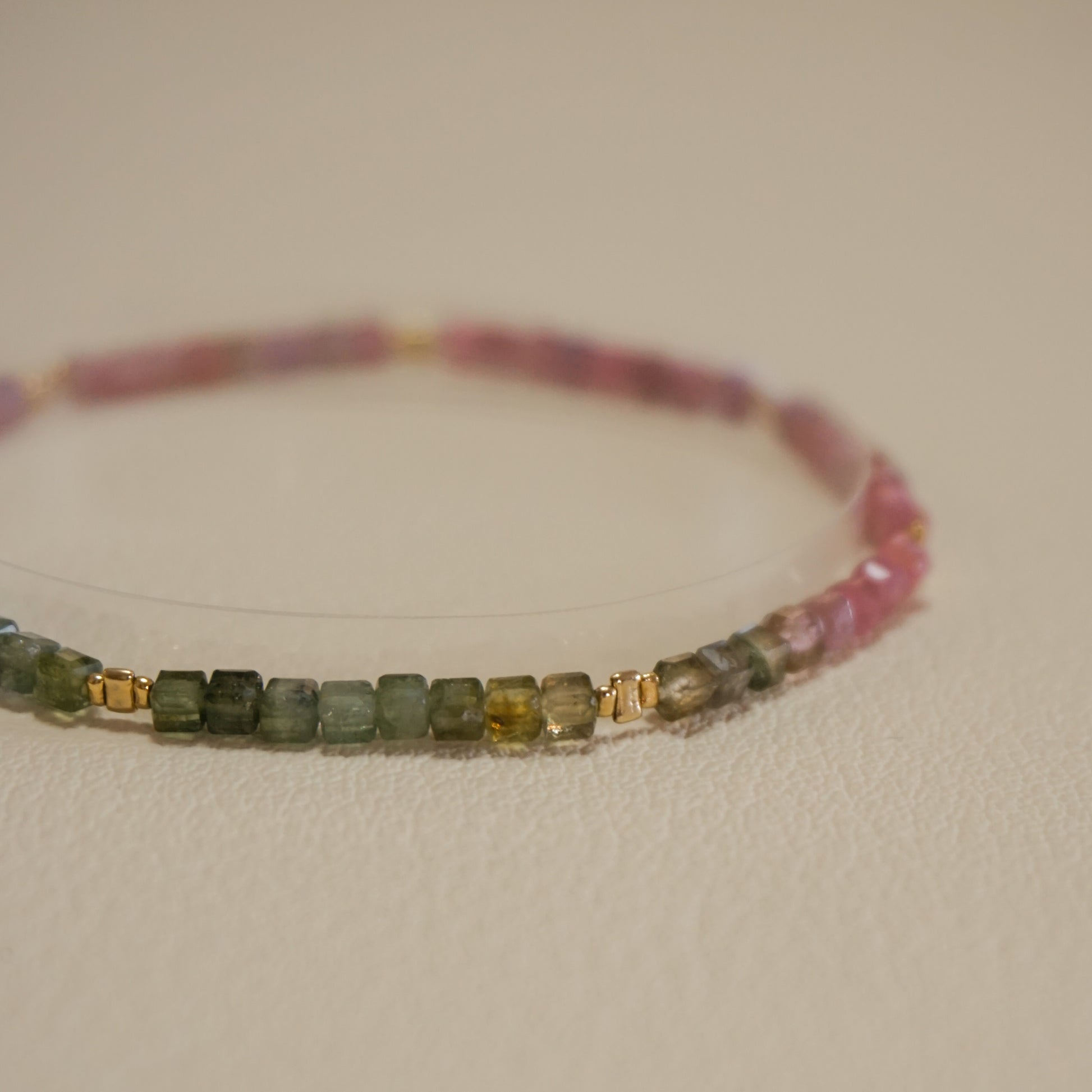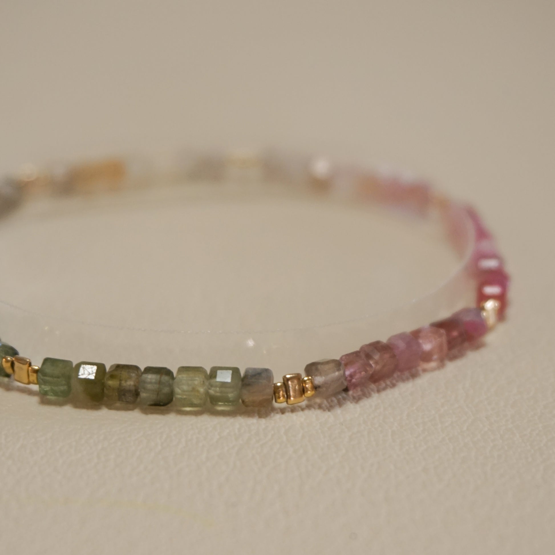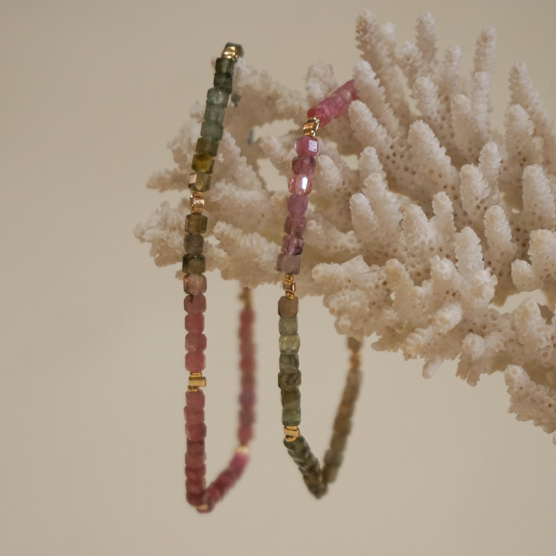 ピンクトルマリン、グリーントルマリン、メタルビーズ、