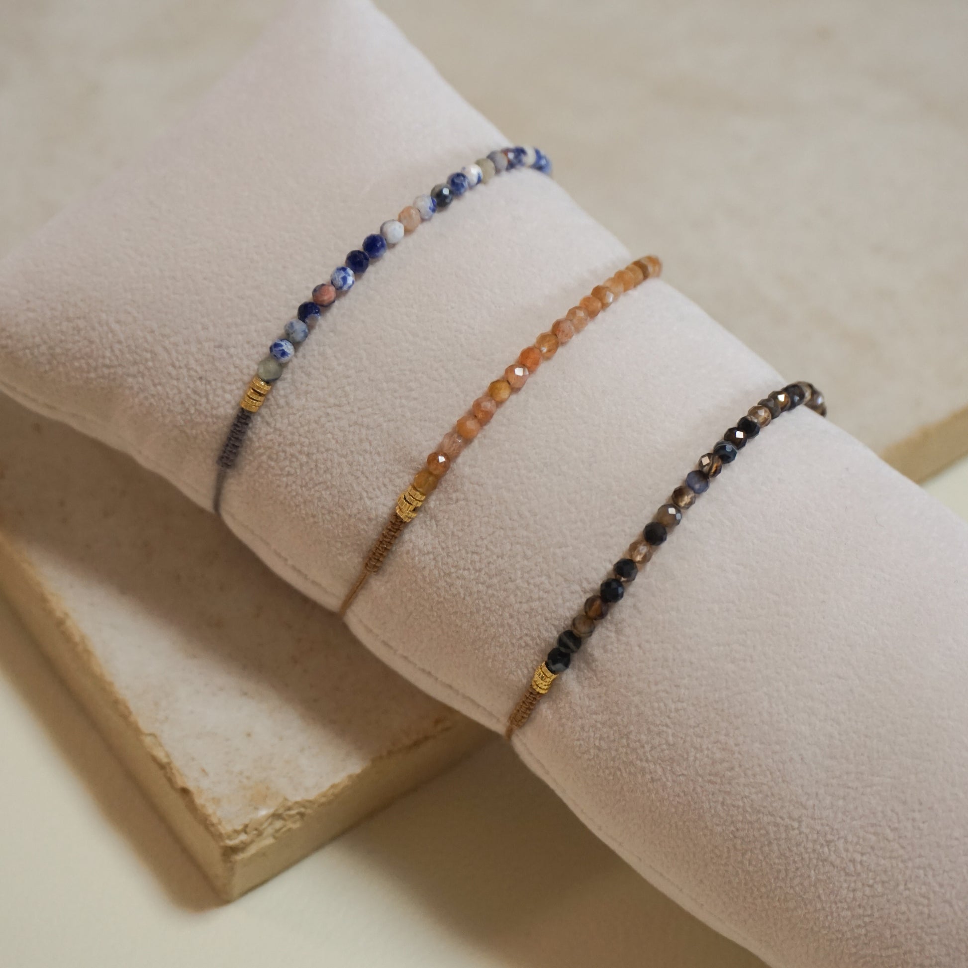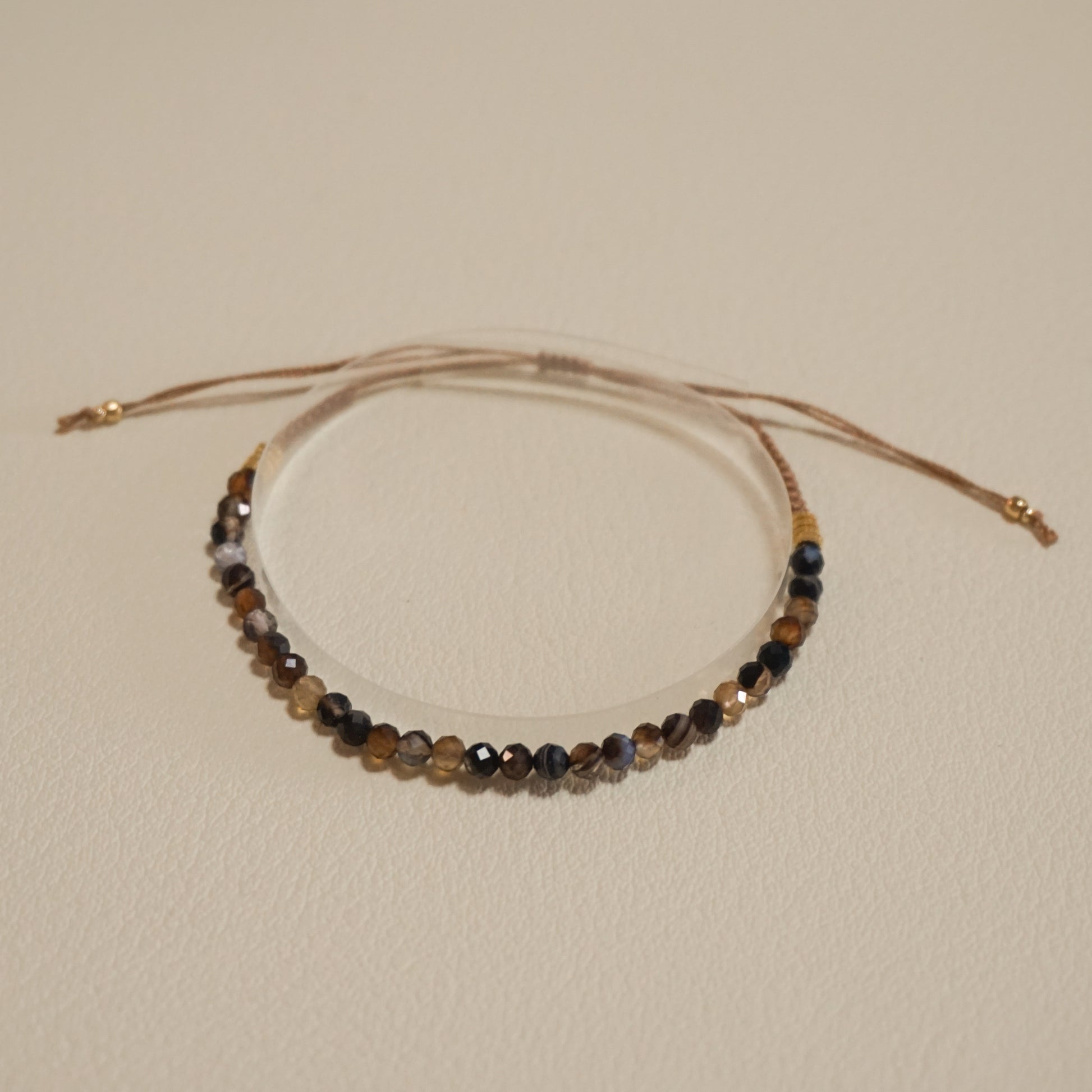 ブラウンストライプアゲート、メタルビーズ、エジプト綿紐