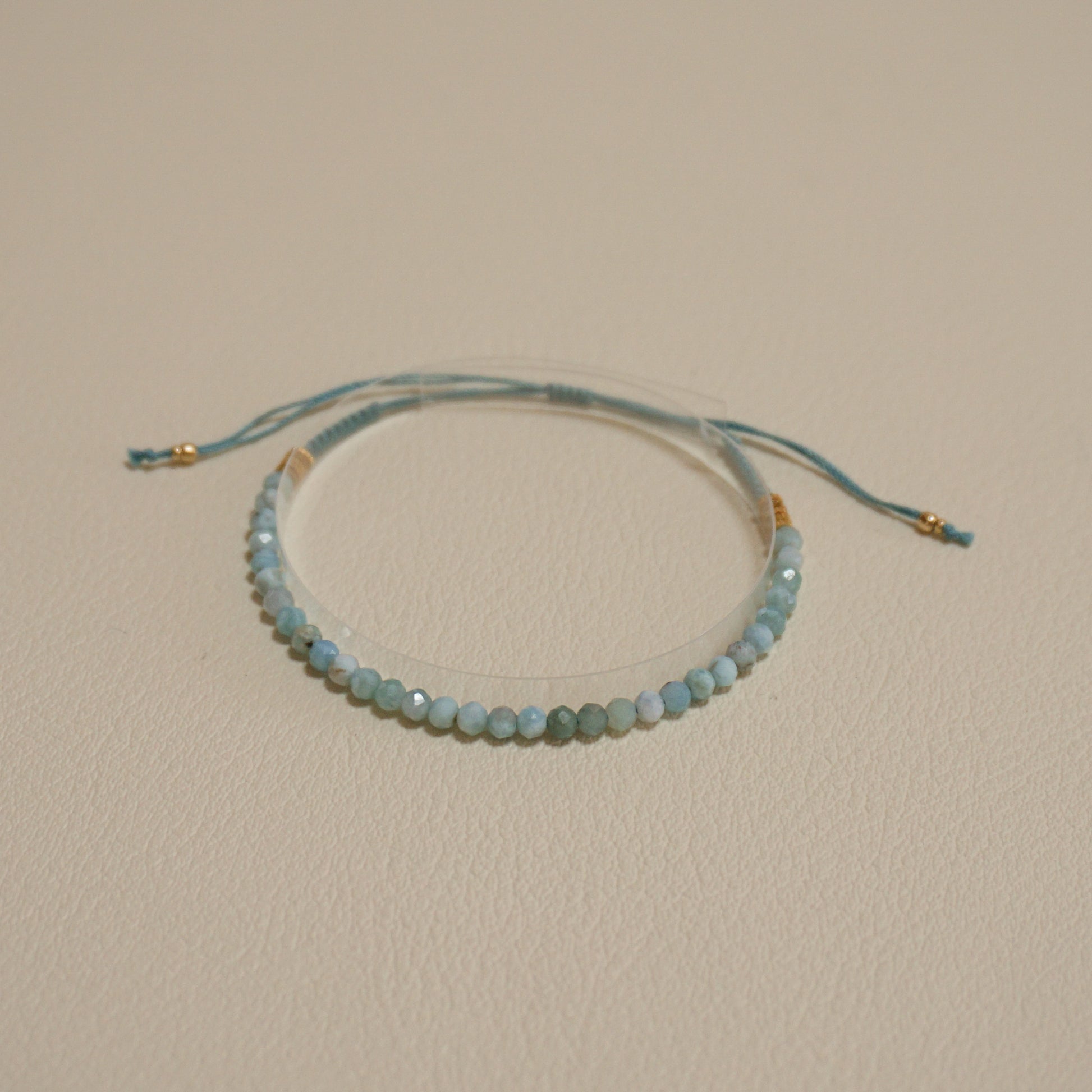 ラリマー、ガラスビーズ、メタルビーズ、エジプト綿紐