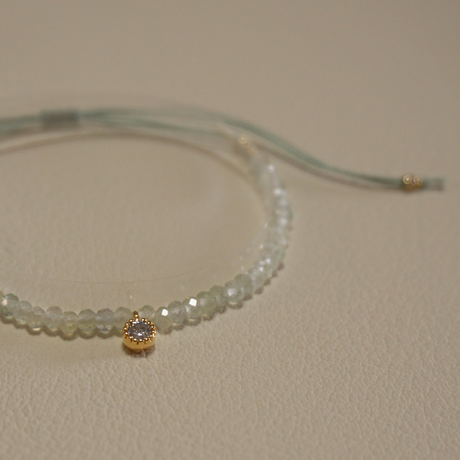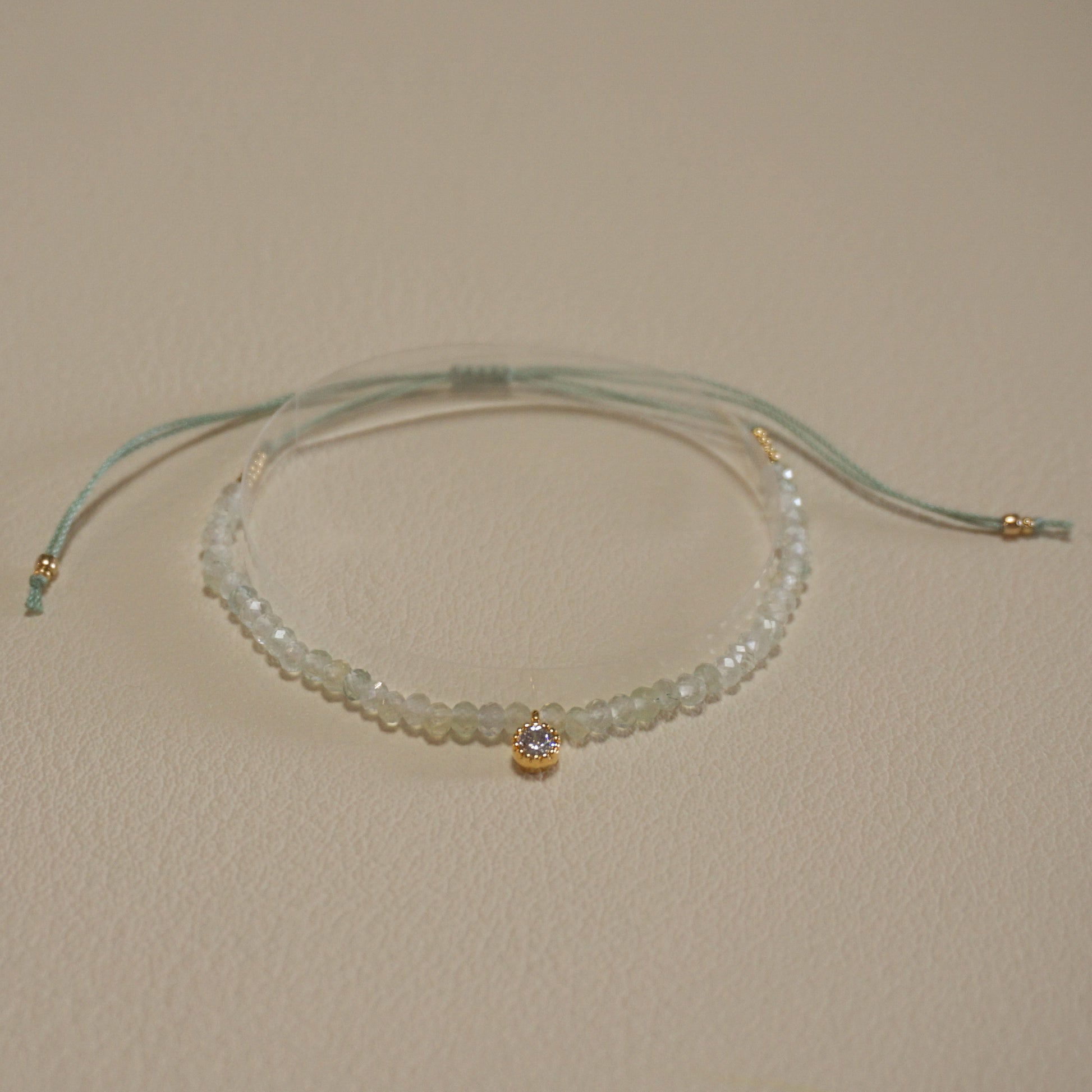 プレナイト、16kgpキュービックジルコニアチャーム、メタルビーズ、エジプト綿紐
