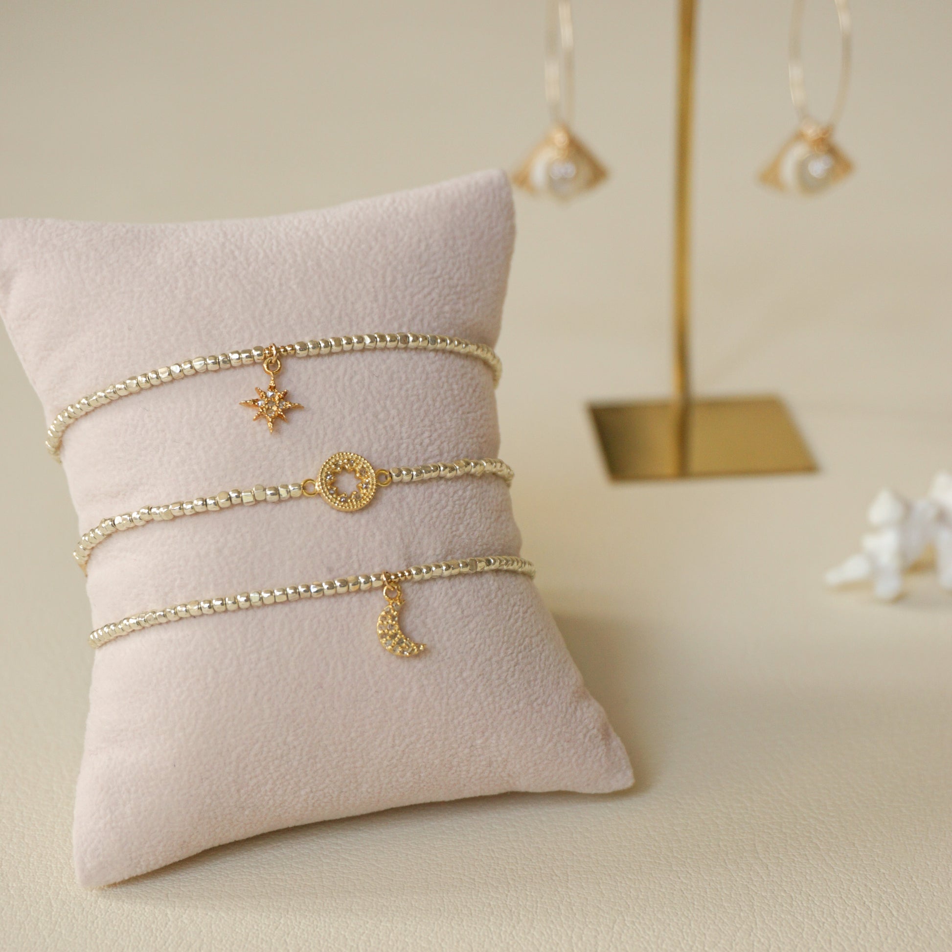 18kgp星チャーム(ダイヤモンド付き)、ビーズ、ガラスビーズ、メタルビーズ、エジプト綿紐