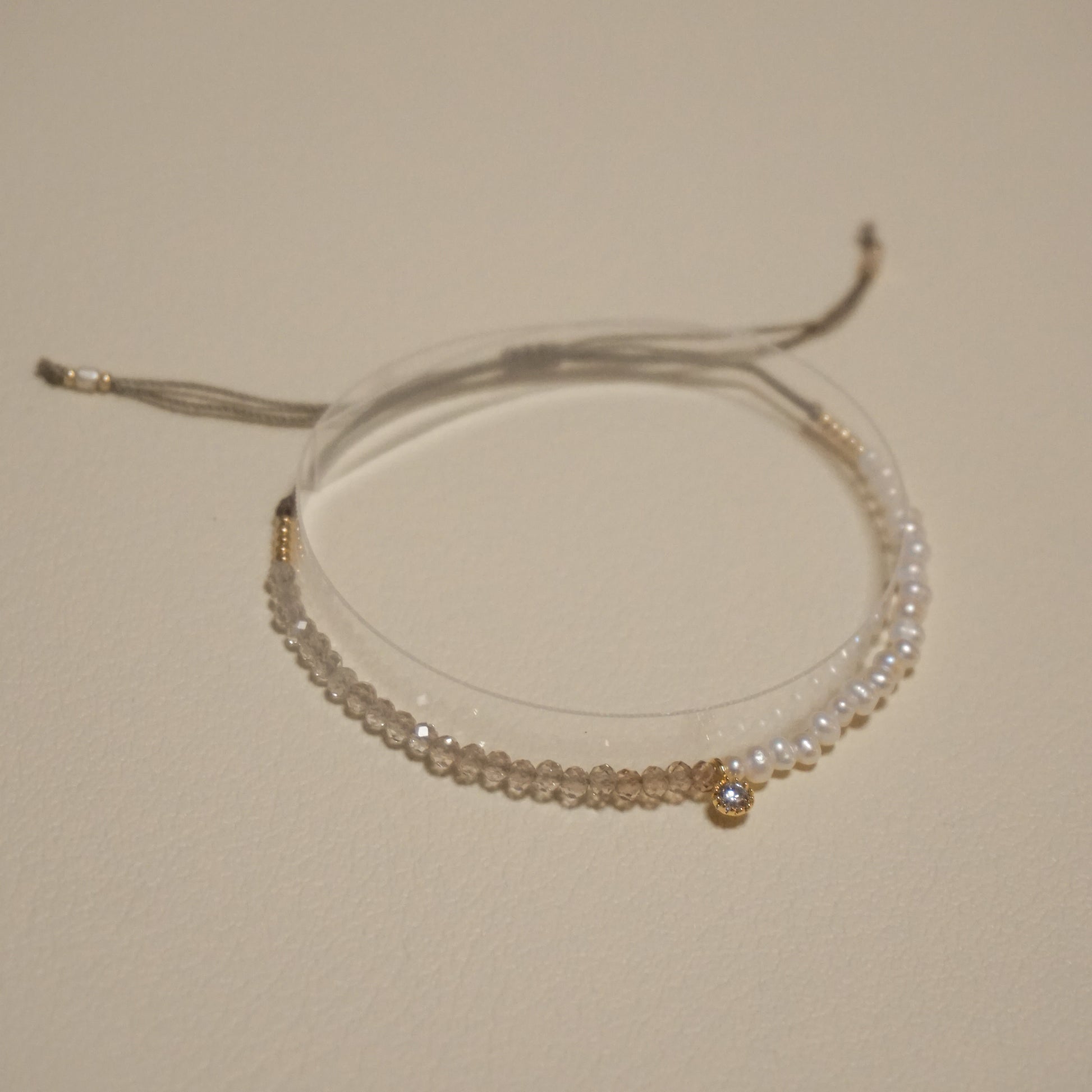 ブラウントパーズ、淡水真珠、真鍮キュービックジルコニアチャーム、ガラスビーズ、メタルビーズ、エジプト綿紐
