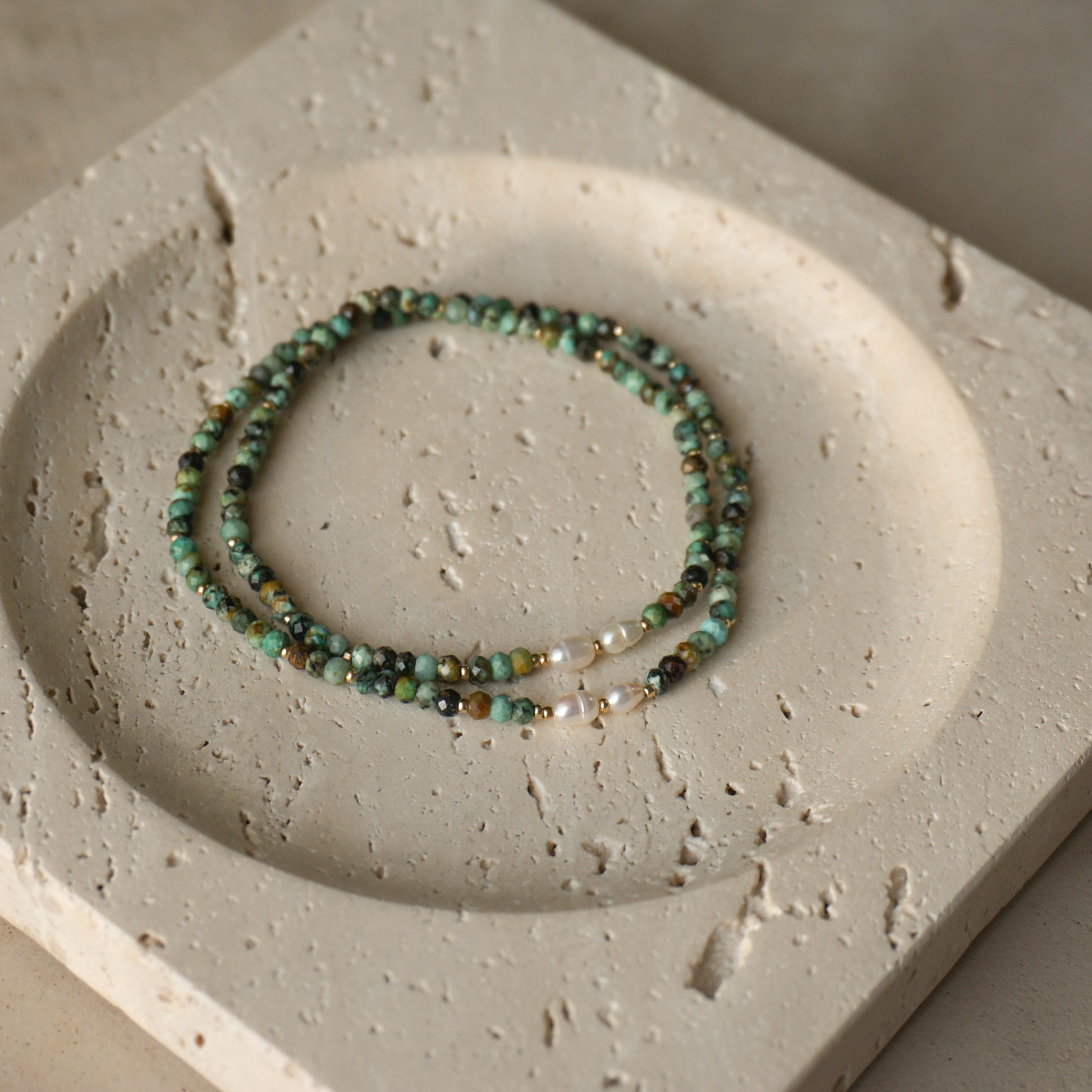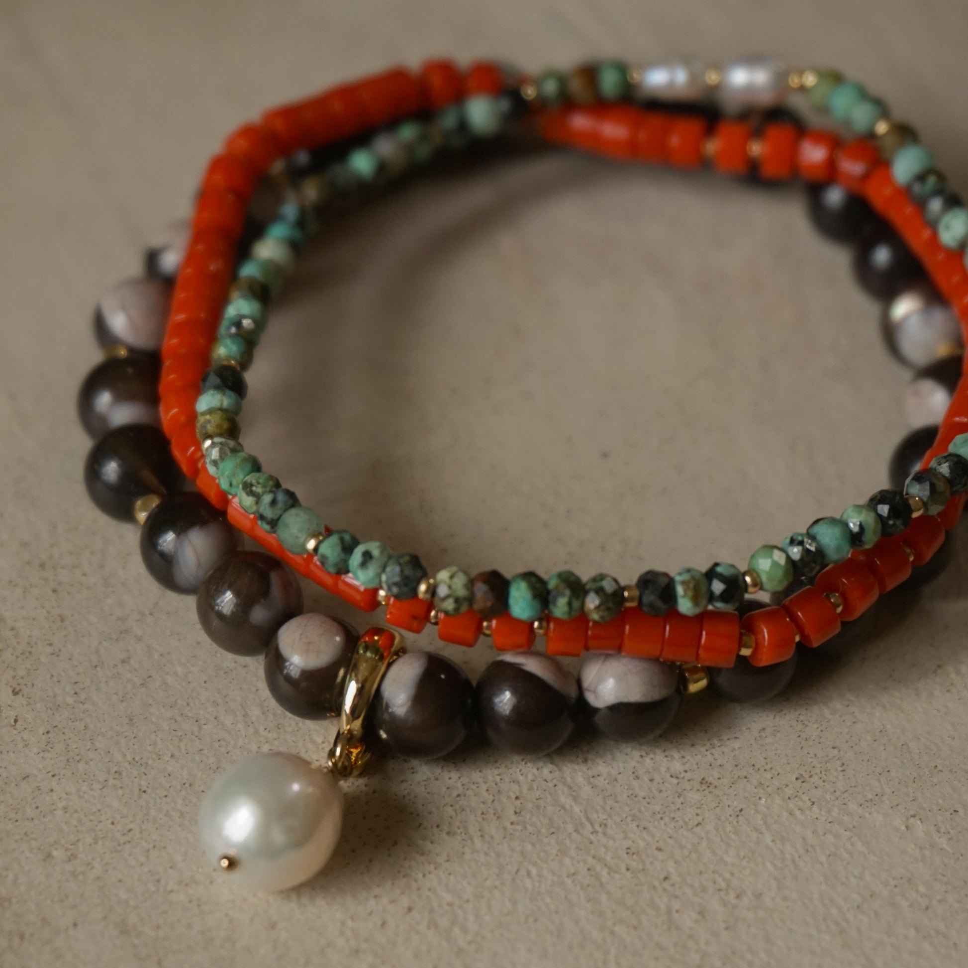 ターコイズ、淡水真珠、メタルビーズ