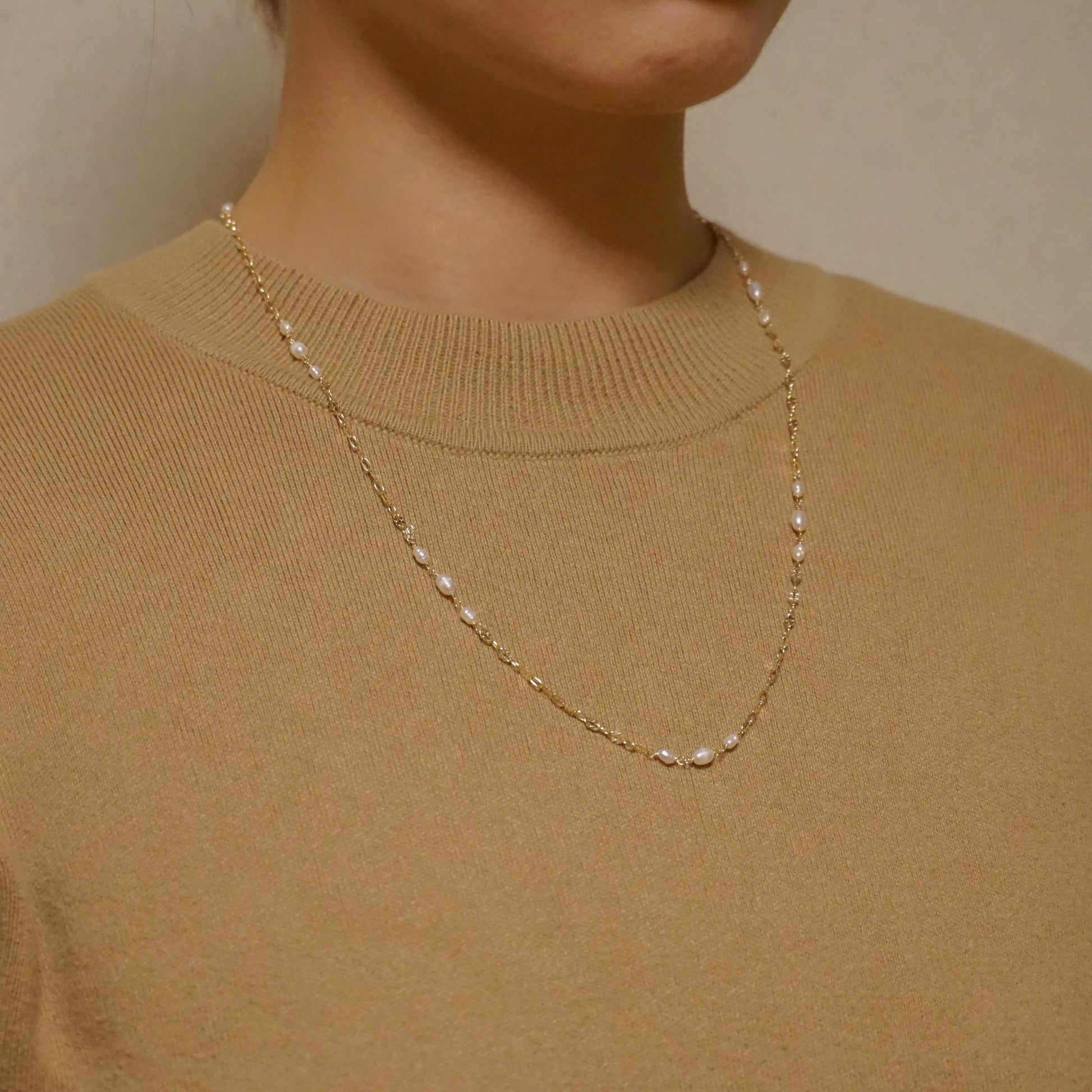 上品な煌めきを放つデザインチェーンを組み合わせて