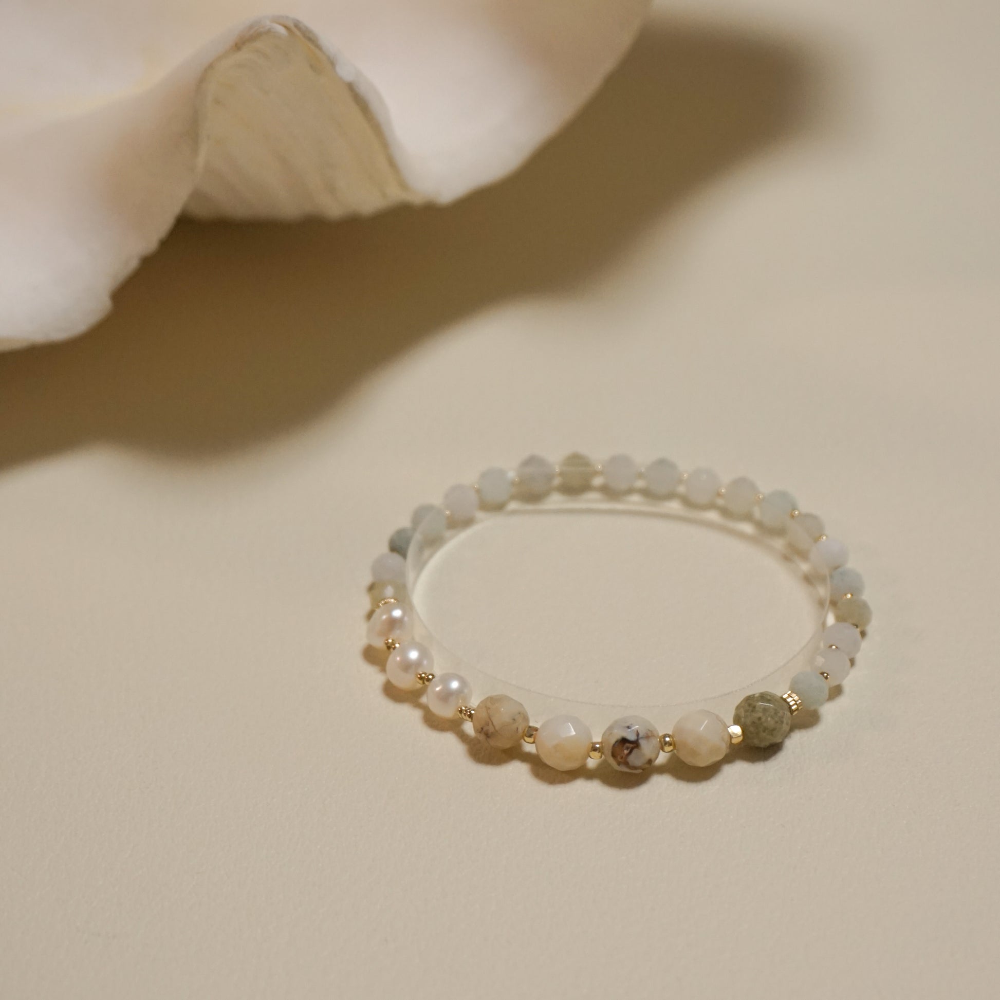 浅瀬の穏やかな波を思わせるジェイドを組み合わせて