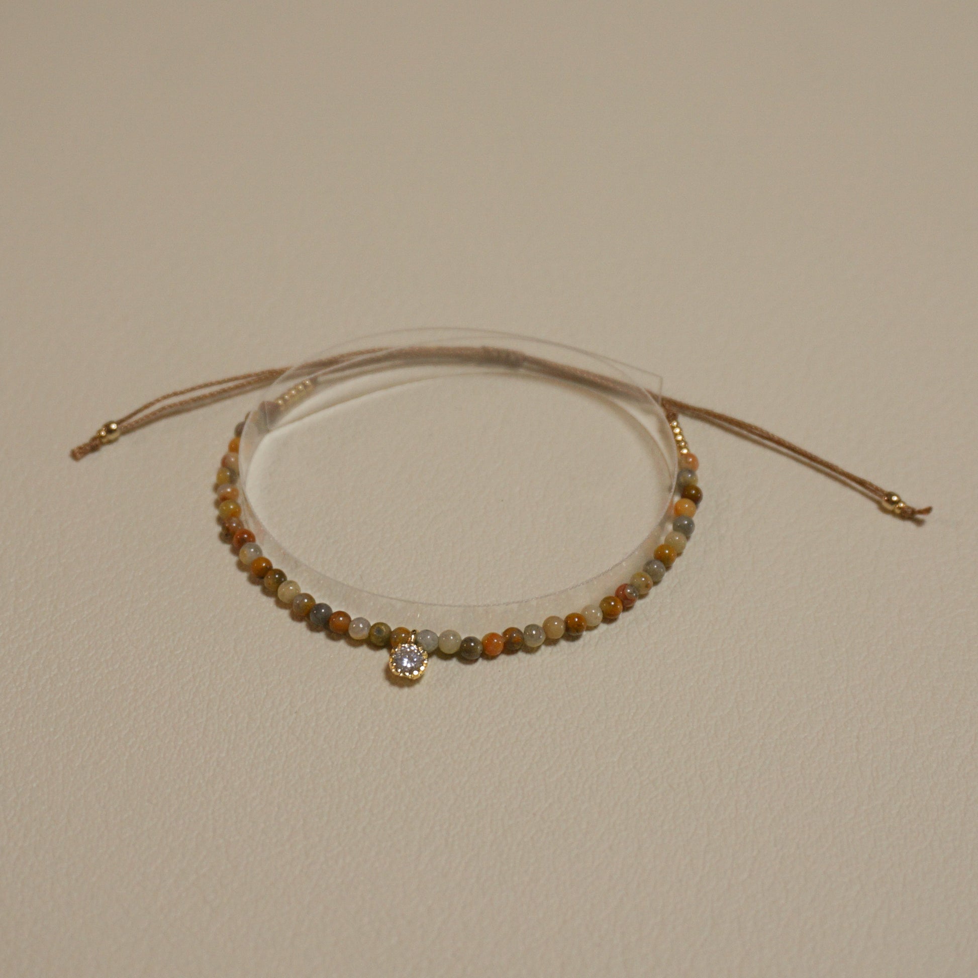 クレイジーレースアゲート、真鍮キュービックジルコニアチャーム、ガラスビーズ、メタルビーズ、エジプト綿紐