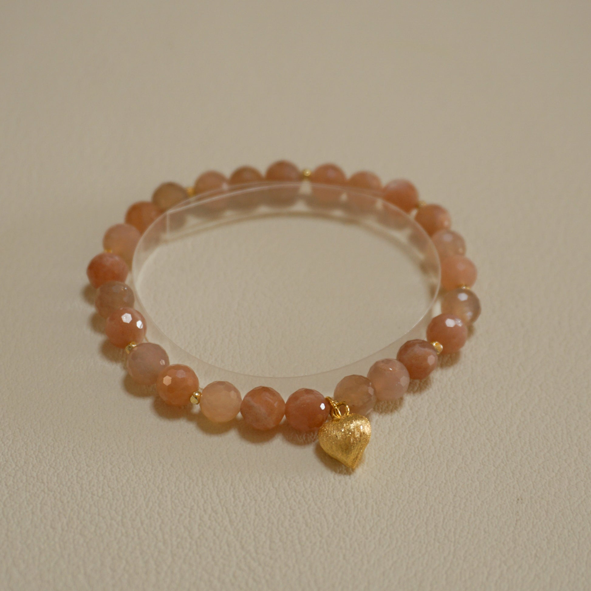 オレンジムーンストーン、メタルビーズ、18kgpチャーム