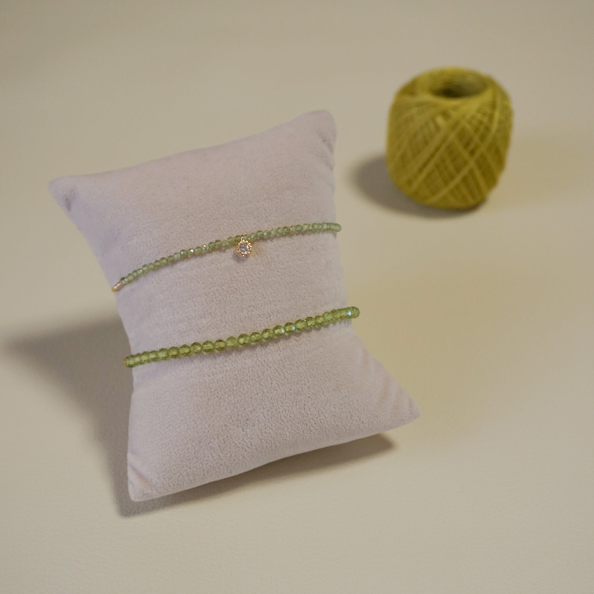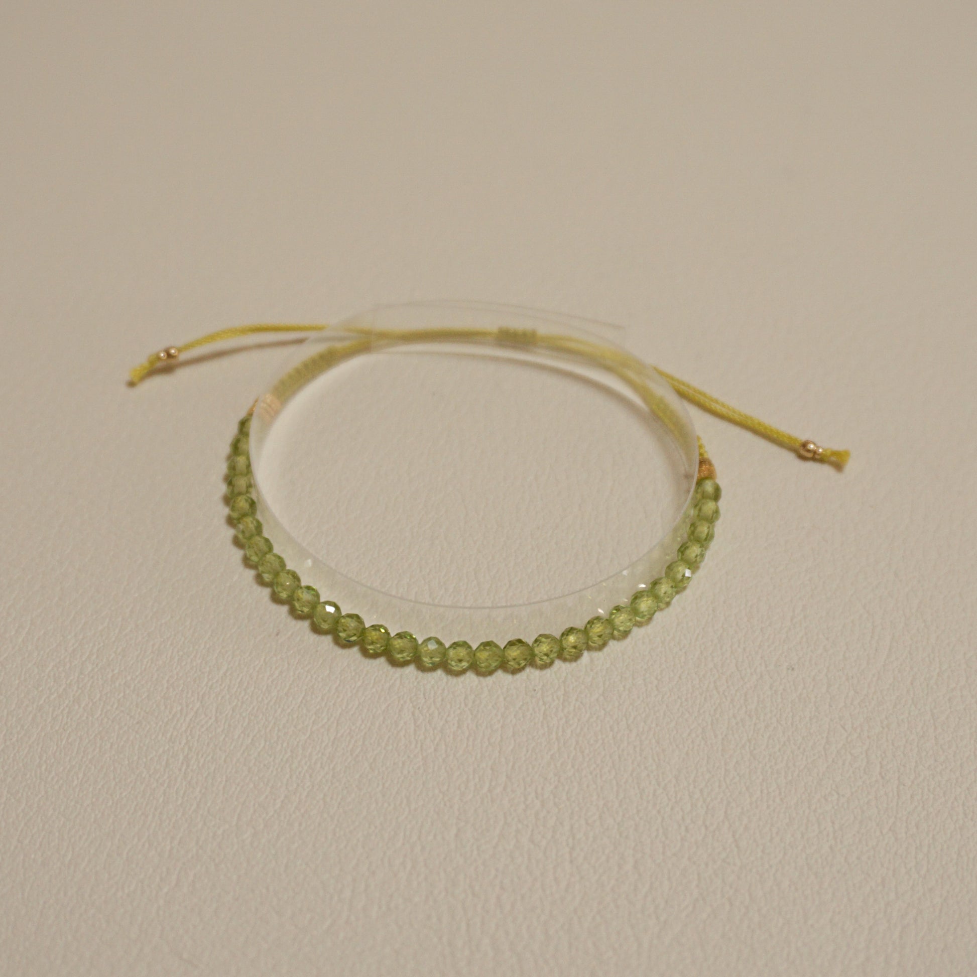 ペリドット、ガラスビーズ、メタルビーズ、エジプト綿紐
