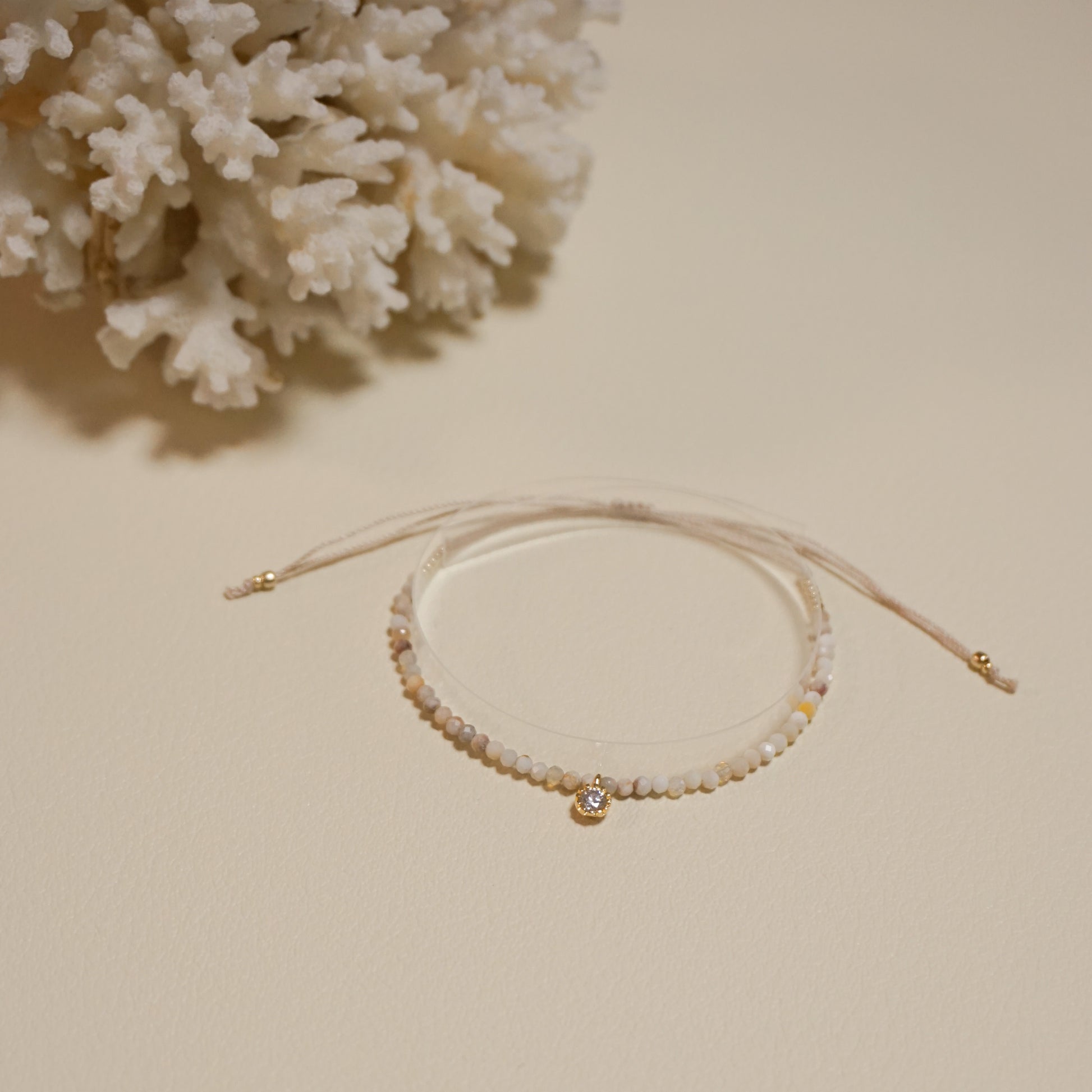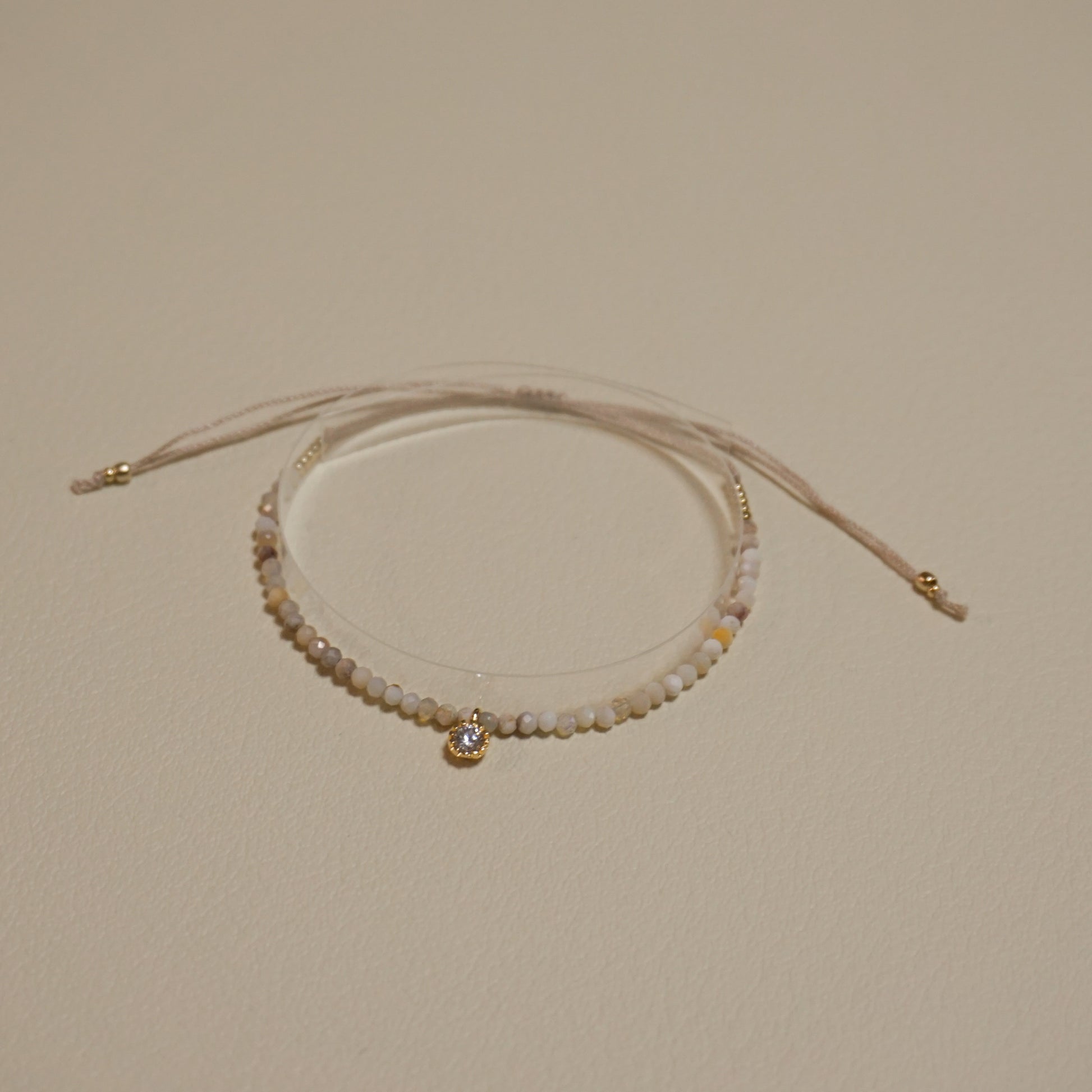 プレシャスオパール、真鍮キュービックジルコニアチャーム、ガラスビーズ、メタルビーズ、エジプト綿紐