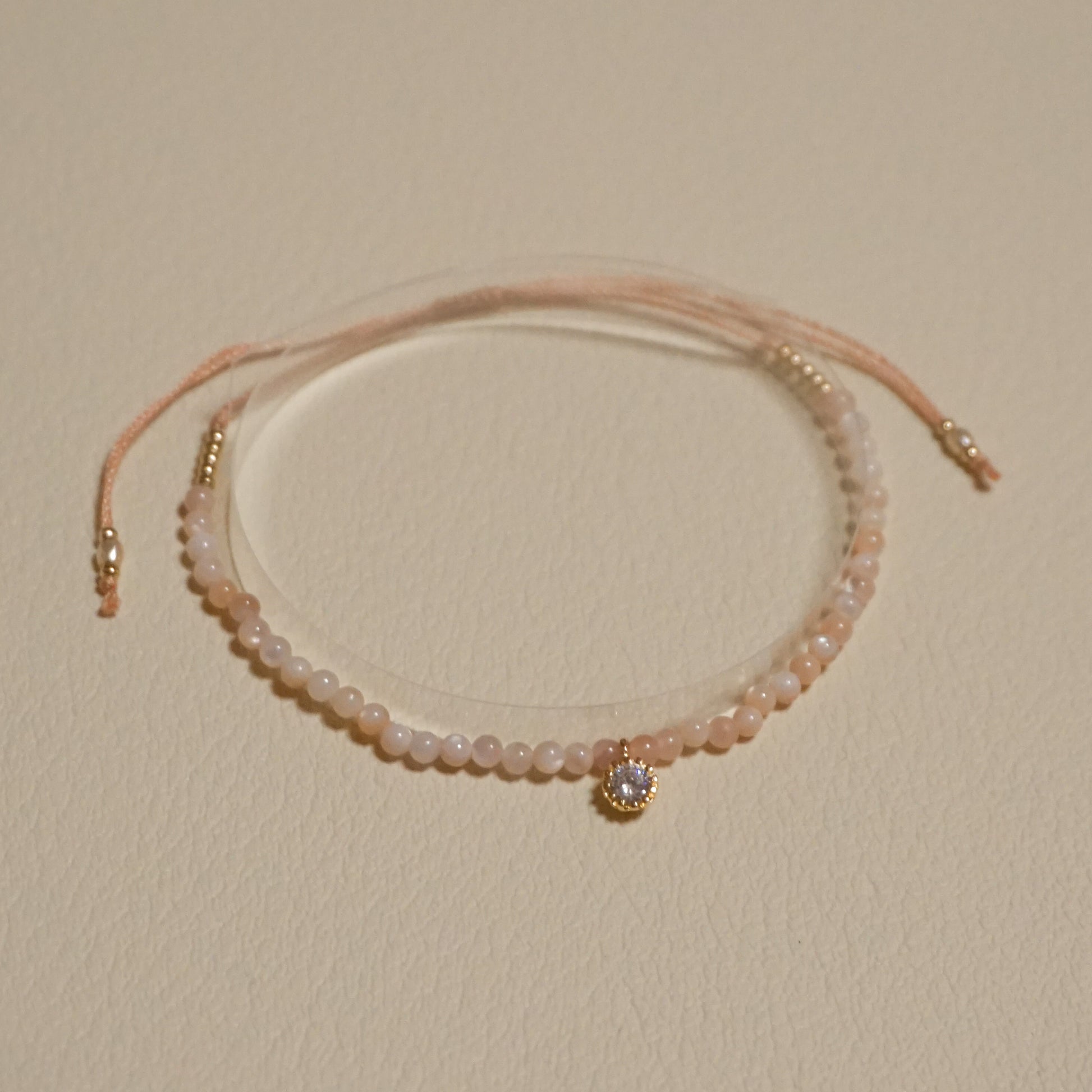 シェル、真鍮キュービックジルコニアチャーム、ガラスビーズ、メタルビーズ、エジプト綿紐