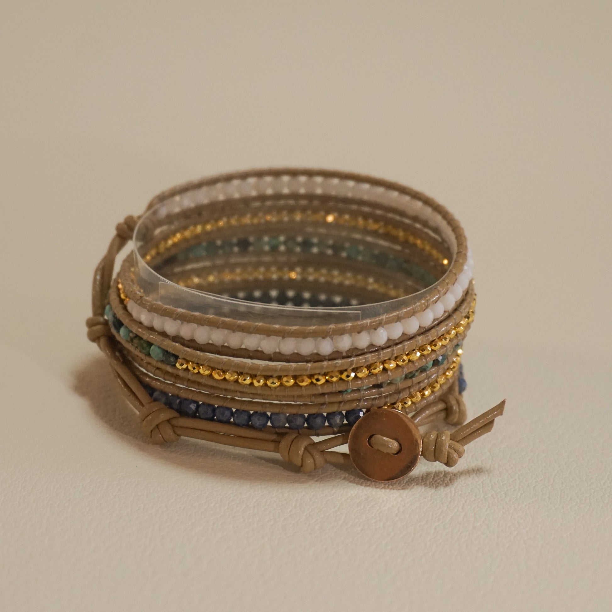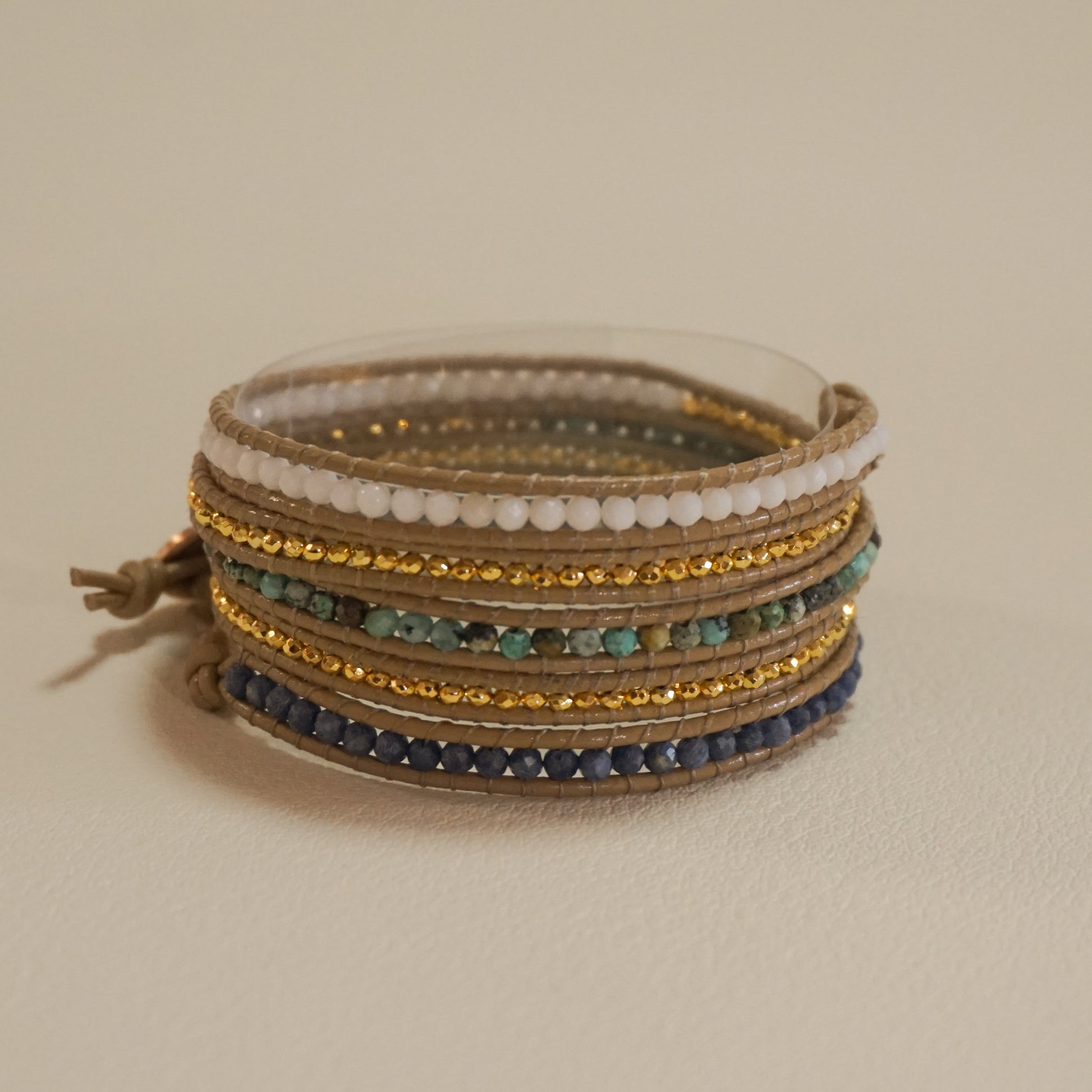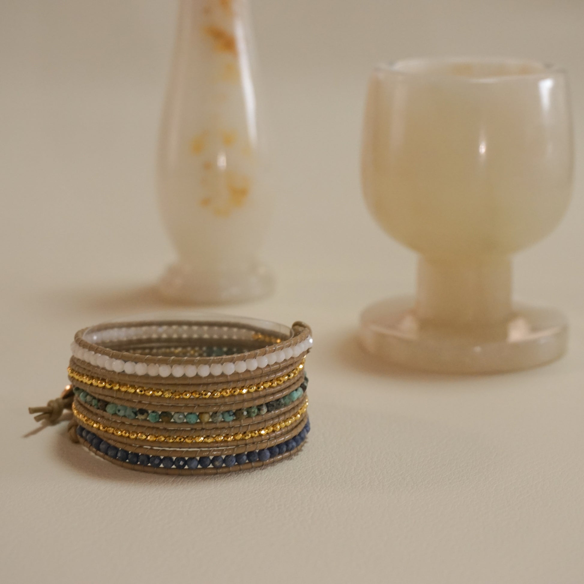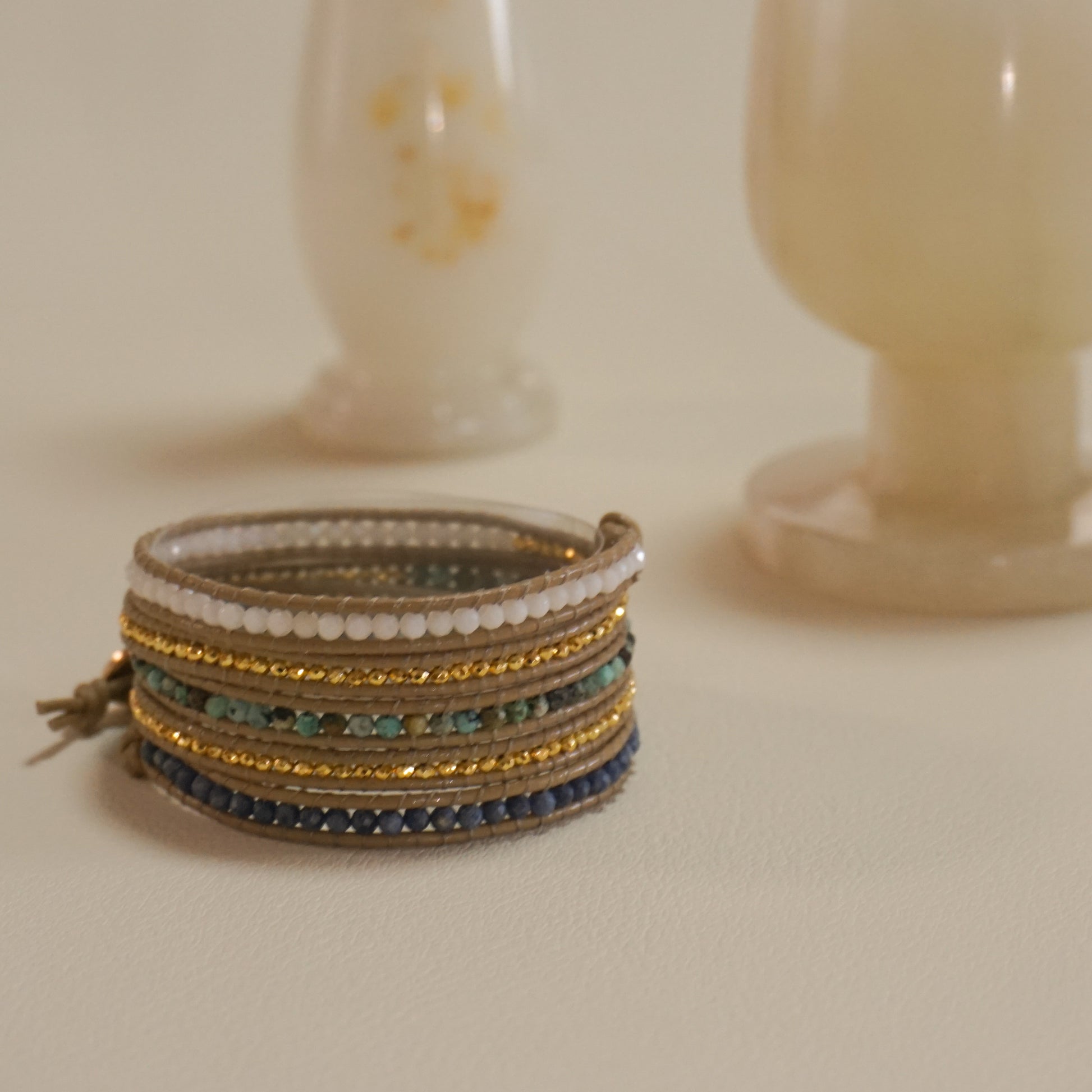 白珊瑚、パイライト、ターコイズ、ブルーコーラル、バフレザーコード、合金ボタン