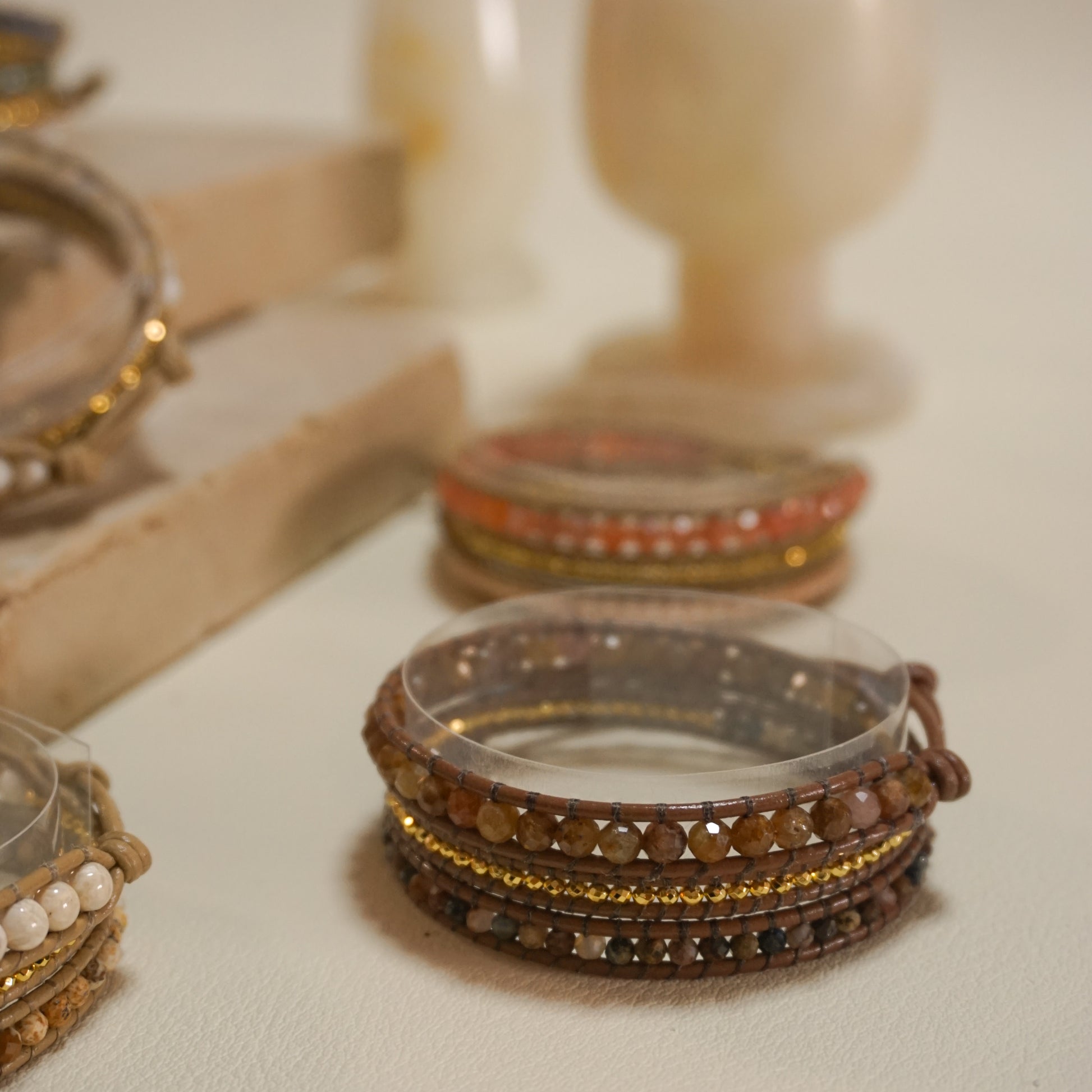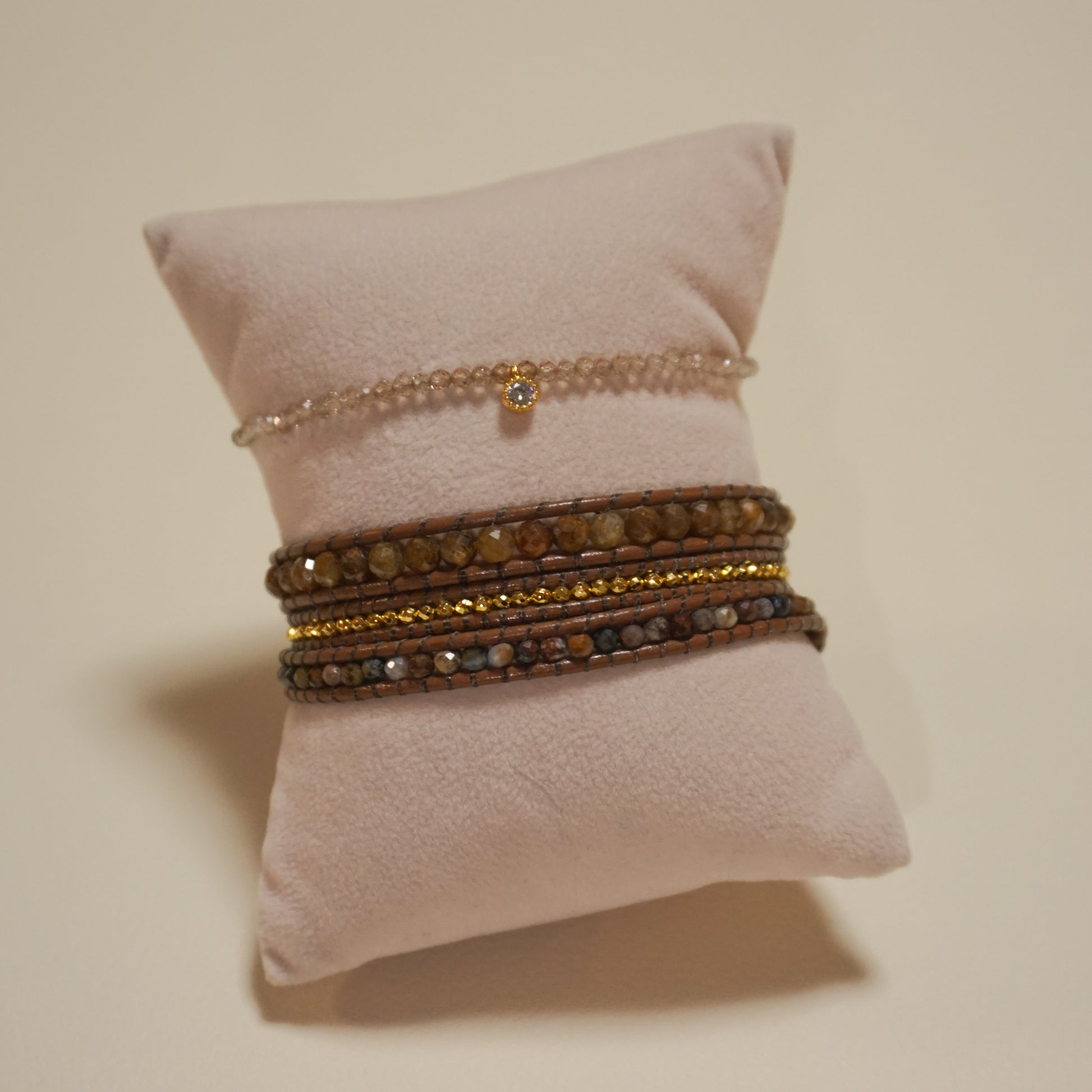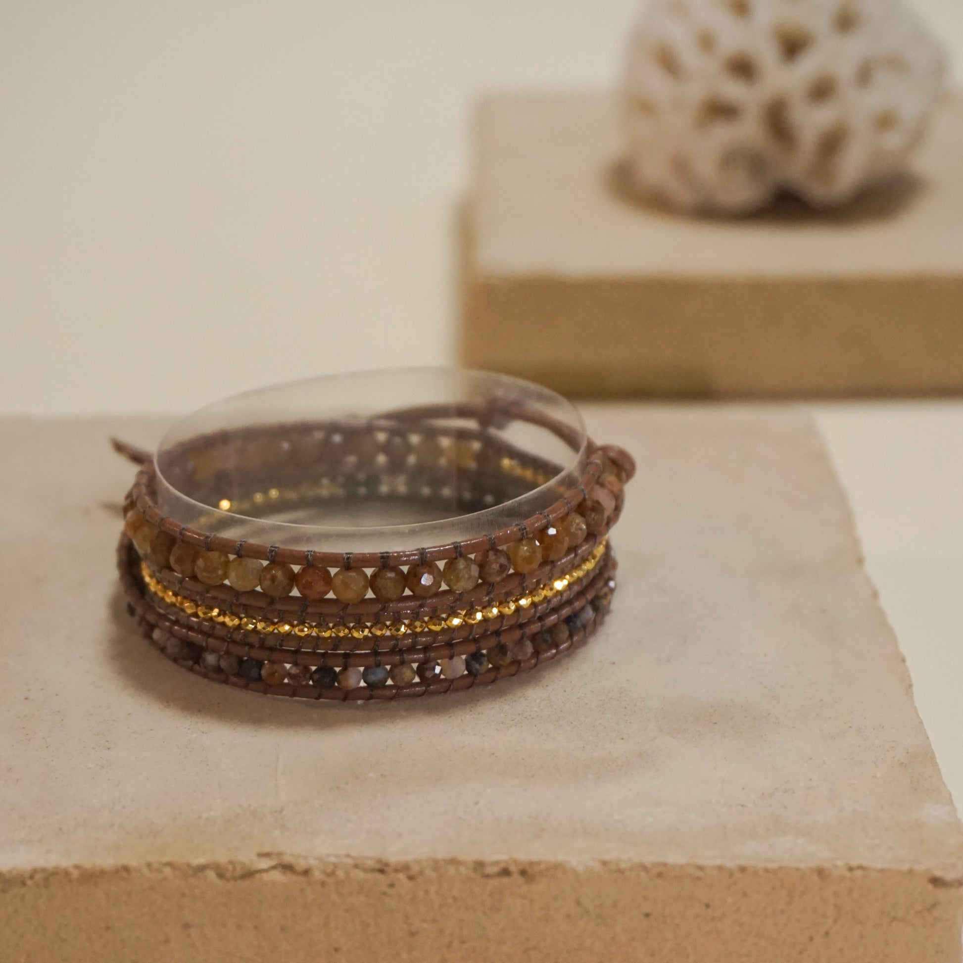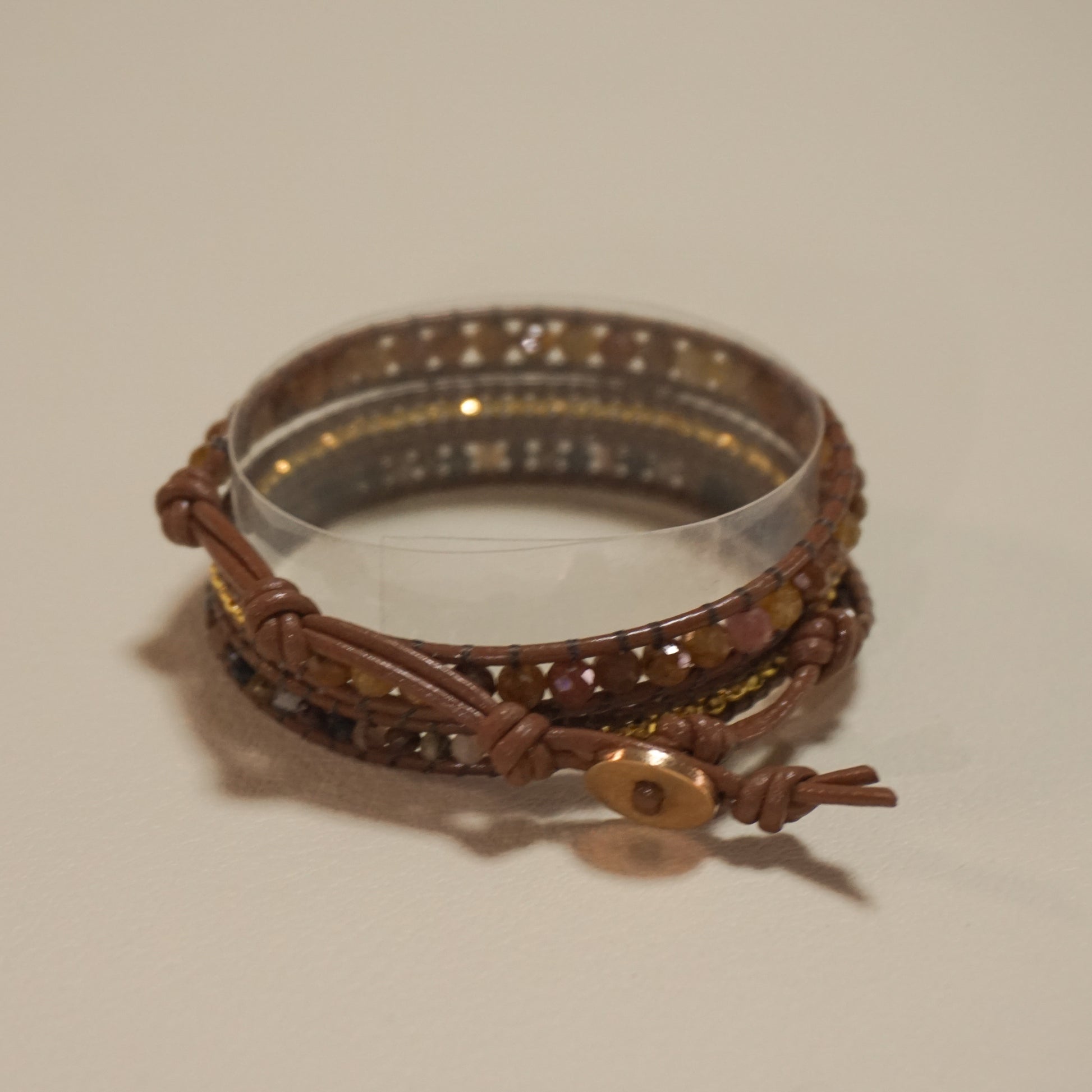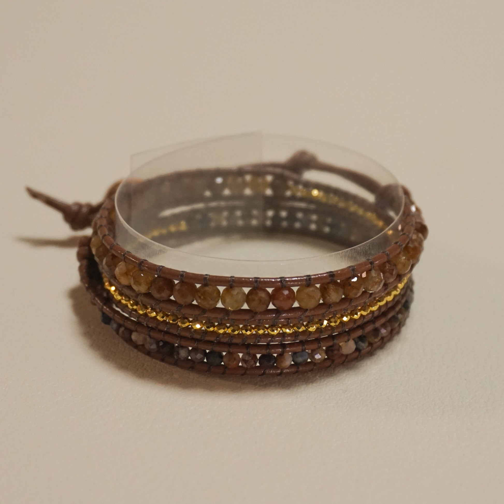 イエローサファイア、パイライト、ピーターサイト、バフレザーコード、合金ボタン