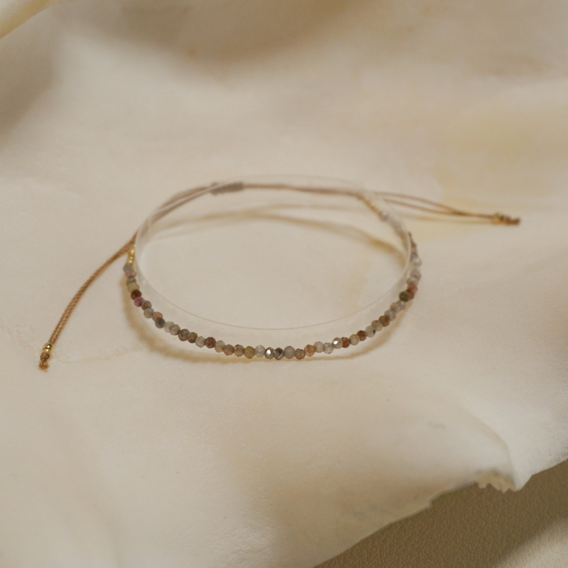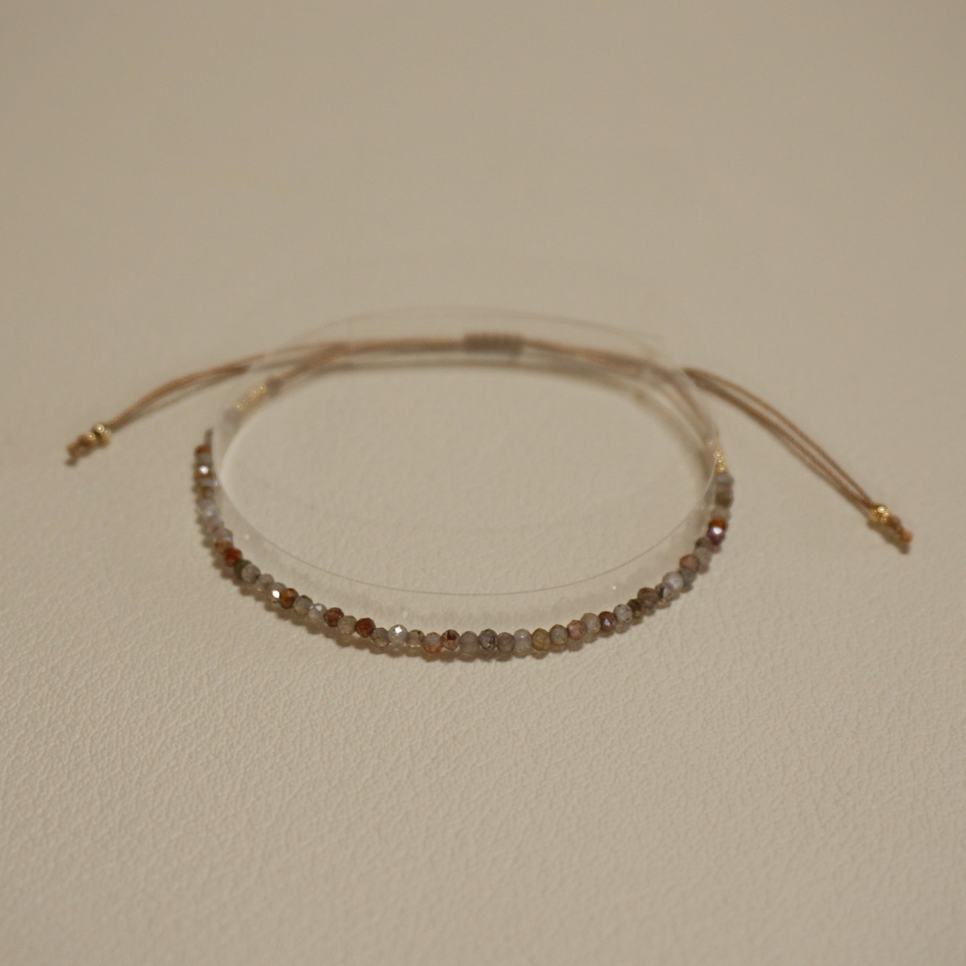 マルチカラージルコン、メタルビーズ、エジプト綿紐
